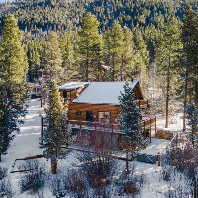 Located in the stunning Colorado Rocky Mountains, home to world-class skiing and snowboarding, as well as amazing hiking and biking trails, this picturesque cabin is located along the bank of the famous Blue River, known for its prize fishing and eye-catching scenery. Located approximately six miles south of Breckenridge, this cozy cabin mixes modern amenities while keeping you immersed in the natural scenery around the home. This three-story cabin is the perfect place for families and groups who enjoy being near the ski-town action, but far enough away to enjoy the quiet privacy of the mountains. Guests enter through the garage and climb a short staircase to enter the main level with the kitchen, living room, and guest bedroom. There is a third-floor loft with the primary bedroom, and a basement with a pullout couch, bedroom, and full bathroom. Balconies wrap around the second and third stories to look out onto the beautiful Blue River Valley. There is a hot tub and fire pit and lots of outdoor seating to enjoy the views.