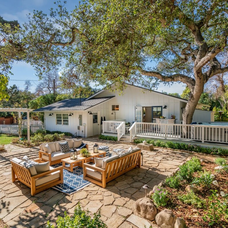 The location and design are really what make this cheerful home pop. You’ll be perfectly situated near Montecito’s premier beaches and the luxurious Rosewood Miramar Resort, all while nestled in a quaint neighborhood. With a short drive, you’ll be enjoying the beach and Coast Village Road which features fine dining and boutique shops. Step inside and revel in the polished renovations and decor. The open concept living and dining rooms move into the kitchen with highlighted gold finishes and a creative breakfast bar that opens to the back deck. All bedrooms offer organic mattresses and luxury sheets, while the primary bedroom also incorporates a separate deck complete with a bar, sitting area, and jacuzzi. The former garage is now a large great room fully furnished with an Xbox, ping pong, and other games. The beautifully landscaped backyard has a large deck, outdoor heaters, a shower to rinse off from the beach, a hammock, and a private creek bridge.