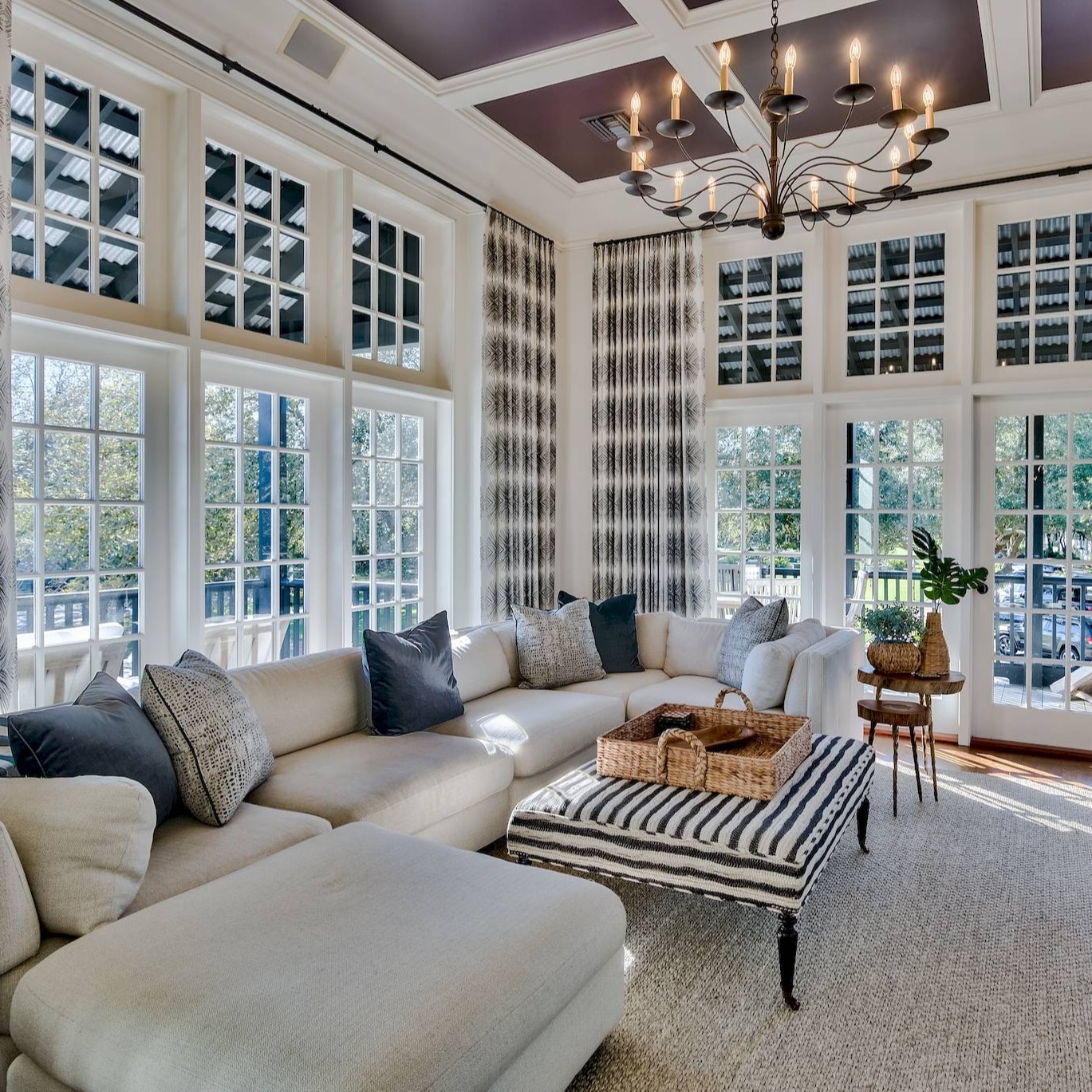 With a courtyard reminiscent of a sultry New Orleans afternoon, this charming home in Rosemary Beach will capture your imagination and your heart completely. Just picture yourself sitting at one of the two teakwood tables, with a mint julep in hand, enjoying the quiet hum of conversation and the company of your closest friends and family. Built to be the personal beach home of the architect, no detail has been overlooked in this elegant and charming vacation home. The reverse floor plan maximizes the lovely views and afternoon breezes from the floor-to-ceiling windows on the upper floor as the bedrooms downstairs stay cozy and cool at night. Enter the first floor through the courtyard to be greeted by three luxurious bedrooms, each accompanied by an ensuite bath. The master suite with a king bed offers all the privacy of its own wing. From its high beamed ceilings to the dual-wing chairs for a quiet moment alone, you’ll feel pampered and relaxed. The additional two suites offer a queen bed and the other two twins and two double beds in a bunk bed style, each with its own private bath. As you ascend the stairs to the upper level, you’ll be greeted by dramatic high ceilings and a fashionable living room with a large sectional sofa and HDTV. The formal dining space offers a round dining table situated in front of French doors with the sunshine streaming in. And the classic kitchen boasts plenty of space to create your most delicious culinary specialties. Perfectly located just steps from the racquet club, tennis courts, and Sky Pool, Crevalle Home will easily become your favorite Rosemary Beach vacation stay.