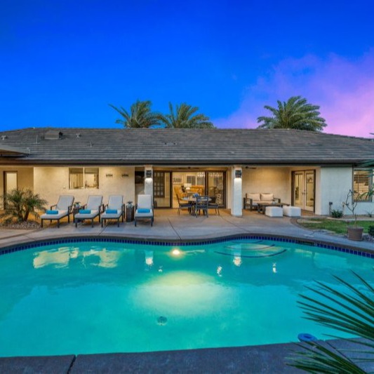 This remodeled luxury home is the perfect desert vacation for your family and friends. Offering a place to relax, unwind, and have an amazing time whether you plan to float in the pool while having a bbq or just sit back and relax inside this custom home. The home offers an open floor plan with custom cabinetry, high-end finishes, luxury bedding, and the finest furnishings. The kitchen is equipped with a Wolf Range, a custom refrigerator large enough for those big family dinners, and lots of counter space to prepare and make that favorite meal. Guests will enjoy siding up to the extremely large island that can host the entire crew. The bar offers refrigerator drawers to store all those cocktails so you can mix up your favorite while you watch a game on the TV or shoot a game of pool on the beautiful pool table. The living area is extremely comfortable. You can recline and plug in your device and start to work or just surf the internet. The newly installed electric fireplace is great for those who want a bit of ambiance. Once outside, you have so many areas to converse. Enjoy the pool until the sun sets then jump into the spa and star gaze. The large outdoor grilling island features plenty of seating and a Traeger gill.