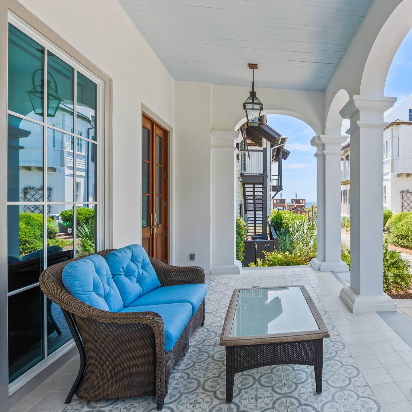 Breathtaking exterior archways, a private boardwalk to the beach right in your backyard, views of the turquoise Gulf of Mexico from the second-floor porch, and lots of vintage-inspired interior design elements make Atwood Home an exquisite 30A stay. Climb the stately front staircase up to the arched portico. The double front door opens to the main living area, featuring neutral slip-covered furnishings, dark hardwood floors, and elegant wainscotting. There’s a large flatscreen HDTV here as well, for screening classic old movies or catching up on your favorite TV show. Around the corner lies a casual dining space and a beautifully designed custom kitchen. Featuring a farmhouse sink, designer lighting, a full suite of GE Cafe series appliances, and glass-front upper cabinets, the kitchen has all the modern luxuries you desire yet maintains the charming appeal of a vintage beach house. Seaglass-colored subway tiles on the backsplash and a bespoke island with a Vetrazzo recycled glass countertop add even more chic style to this already stunning space. The home is tucked into an exclusive community on the quieter east end of Rosemary Beach that allows you to park your car and forget about it. You can walk to nearly everywhere from here. Spend your days relaxing at the beach with a cold drink and a juicy novel, or take a bike ride to a local cafe for a late lunch and an ice cream cone. In the evening, take a stroll to a delicious restaurant then head to a local craft brewery for a nightcap or two.