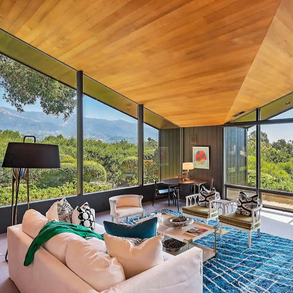 This matchless mid-century masterpiece showcases unparalleled mountain and city views atop a secluded, private road in Hope Ranch. With floor to ceiling windows and skylights throughout the home, the natural light is able to kiss the beautiful interior and vaulted ceilings. The home has three bedrooms and three and a half baths. It is located 10 minutes from downtown Santa Barbara and the Funk Zone, 5 minutes from La Cumbre Plaza, and 5 minutes from Hope Ranch Private Beach. It offers two living room spaces equipped with smart TVs and electric fireplaces. The gourmet kitchen has a full chef's range, high-end appliances, and bar seating. The gorgeous back patio with covered dining and an outdoor fire pit provides the perfect al fresco dining experience with direct mountain views. When not enjoying the property itself, you can venture down to the Hope Ranch Private Beach with the home's coveted beach card and experience our sandy shores in private luxury. This home is warm and inviting and we can't wait to give you the keys.