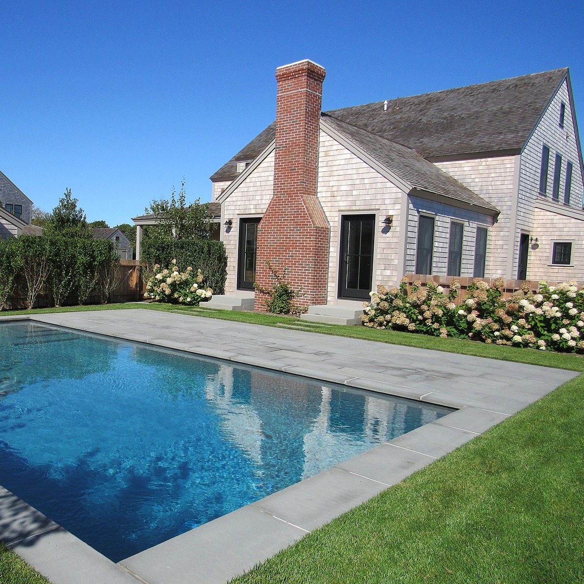 Sophisticated and stylish, this new four bedroom home with a pool offers modern high-end finishes and top-of-the-line appliances. Miacomet Preserve is a stylish new community of nineteen homes, tastefully designed by architect Andrew D. Kotchen of Workshop/APD, taking full advantage of the surrounding pristine Conservation Land and the nearby unspoiled south shore beaches. These sophisticated properties offer modern high-end finishes, top-of-the-line appliances, and an attractive layout, ideal for summer living and enjoyment. This home offers three finished levels, with four bedroom suites and five bathrooms (4 full, 2 half) plus an outdoor shower. The home is surrounded by mature landscaping and enhanced with a private swimming pool, lounge, and dining furniture. Enjoy the natural beauty of the area as you stroll or bike by nearby Miacomet Pond on your way down to the lovely beach found at the end of Miacomet Road, 0.8 miles away. The first floor has an open living, dining, and kitchen area with glass doors opening out to the bluestone patio and pool area on one side and then a fenced-in yard with bluestone patio and dining furniture out the back. The first floor includes an en-suite bedroom with a queen bed and also a powder room and laundry/mudroom. Located on the second floor, the master suite has a king sized bed with a private deck, cathedral ceilings, and a large shower. The two guest bedrooms also have their own private baths, one with a queen and one with a king. The lower level has a spacious family room with large screen TV and seating. There is a half bath and bunk beds on the lower level as well.